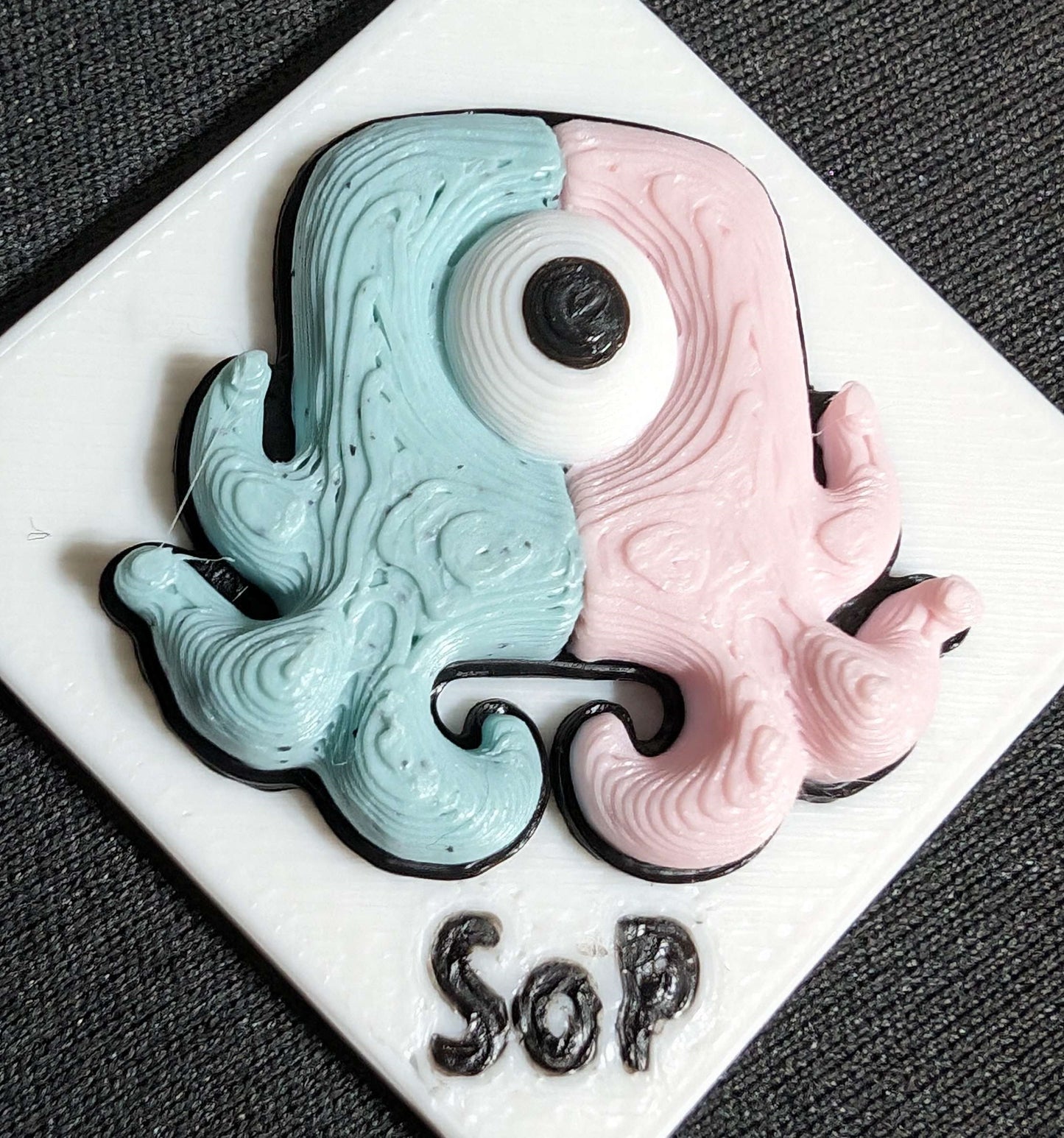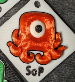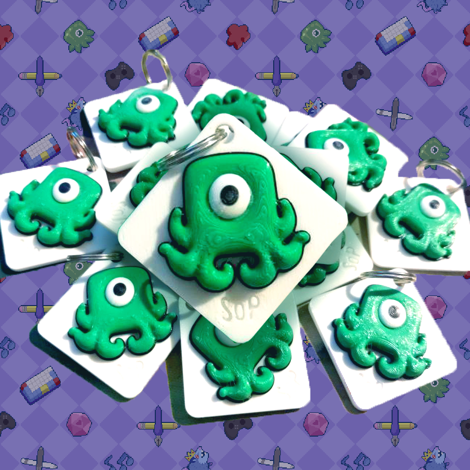 A 3D printed 1.25 inch keychain produced by Ryan & Sam!
